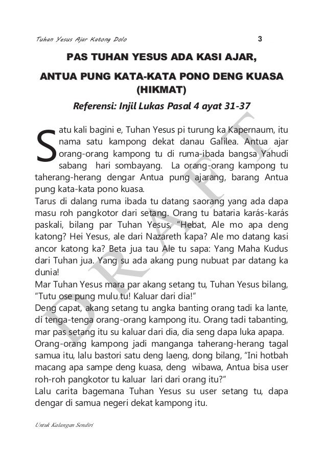 Tuhan Yesus Ajar Katong Dolo Draft Portion Of Luke S Gosple In Ambon