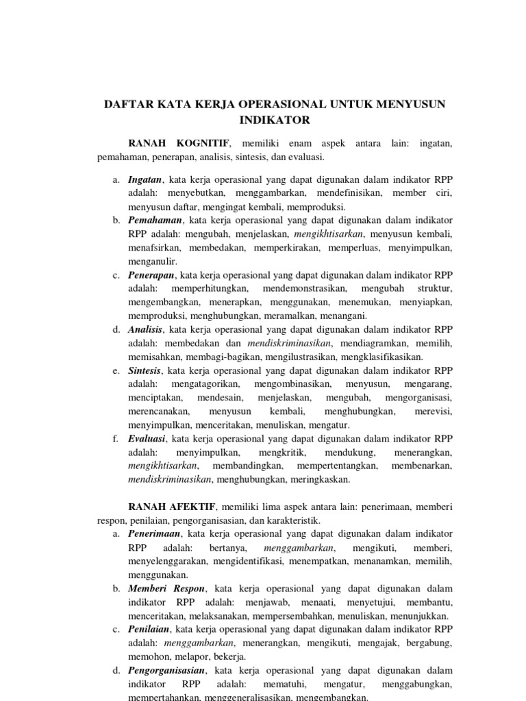 Daftar Kata Kerja Operasional Untuk Menyusun Indikator